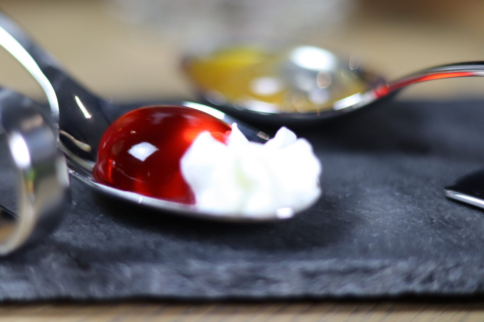 Majuni Mastic: Bubble με λικέρ μαστίχα, γλυκόξινη σως φρούτα του πάθους, ενισχυμένο ενέσιμα με Majuni (πικρόγλυκο λικέρ ελληνικών βοτάνων)
