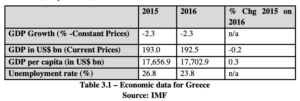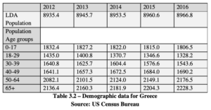 (LDA) population is shrinking. As a direct result of Greece’s economic turmoil, a considerable number of people are leaving the country and moving to Western Europe. It is estimated that half a million people have left Greece since 2009. The population has fallen below 11m (Campion, 2017).